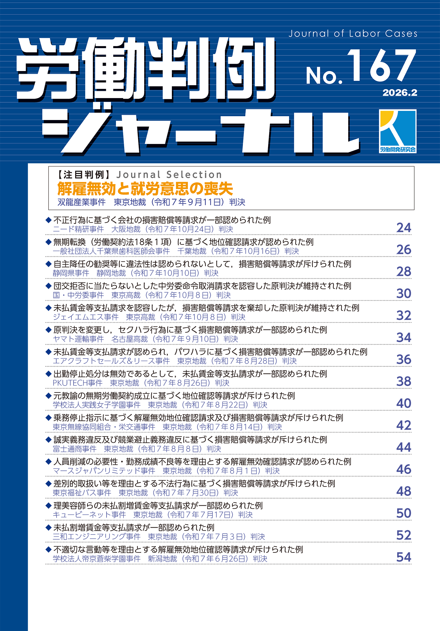 「労働判例ジャーナル」ウェブ版は、デジタルライブラリーからご利用いただけます。デジタルライブラリーのご案内